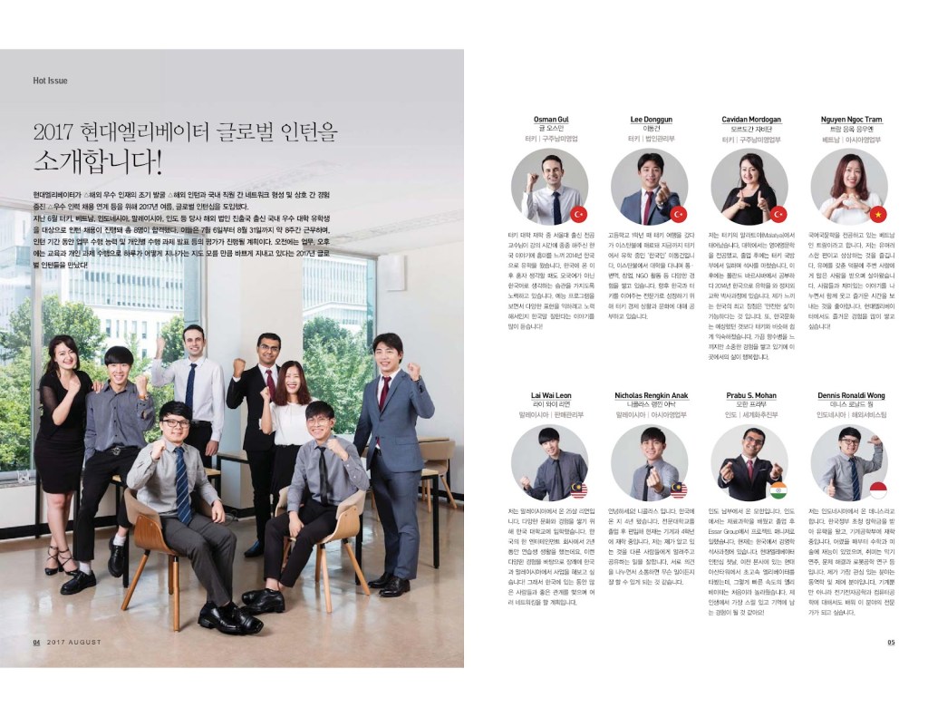 2017년 7월에 저의 인터뷰가 현대 엘리베이터의 잡지에 실렸습니다.