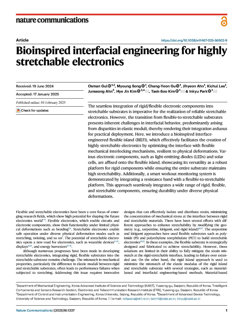 [9] “Bioinspired Omnidirectional Interface Engineered Flexible Island for Highly Stretchable Electronics“