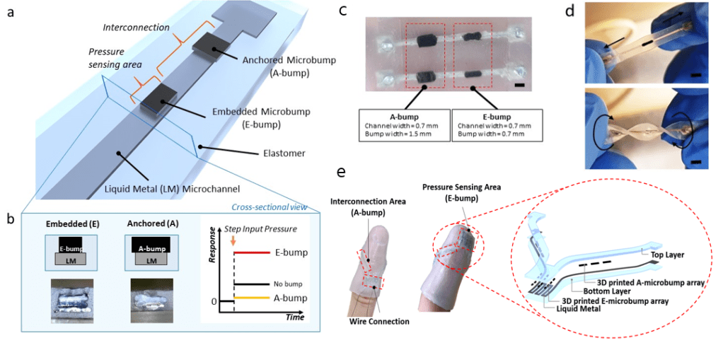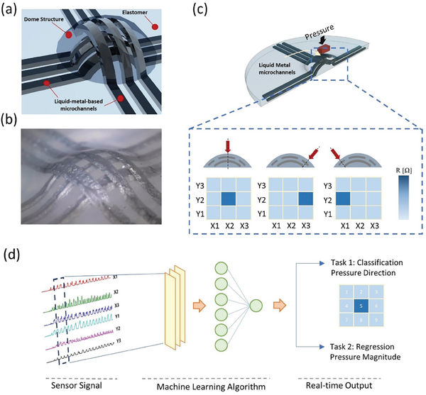 I have conducted research on designing and fabricating advanced sensors tailored for wearable and healthcare applications. My focus has been on developing innovative liquid-metal-based sensors with diverse geometries and functionalities, such as dome structures and piezo-transmittance designs. These sensors exhibit excellent sensitivity, mechanical flexibility, and scalability for various applications [5, 6, 7, 8]. These advancements aim to revolutionize wearable technologies by enhancing sensor performance, user adaptability, and integration into healthcare systems.
